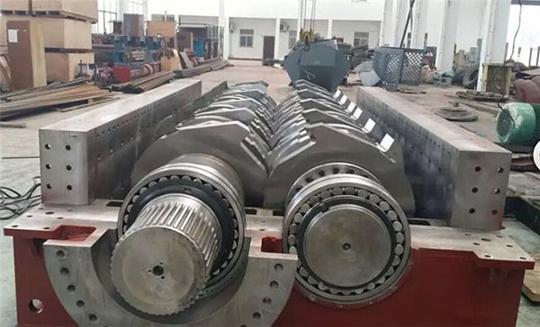 輪胎撕碎機(jī)是利用兩個(gè)耐磨撕碎齒輥,工作時(shí)兩個(gè)撕碎齒輥之間實(shí)行相對旋轉(zhuǎn),形成一個(gè)V型撕碎齒腔,產(chǎn)生的剪切力來破碎物料,物料進(jìn)入兩齒輥間隙(V型破碎腔)以后,受到兩齒輥相對旋轉(zhuǎn)的剪切力作用, 將進(jìn)入的物料撕扯、剪切至需要的粒度由排料口排出。