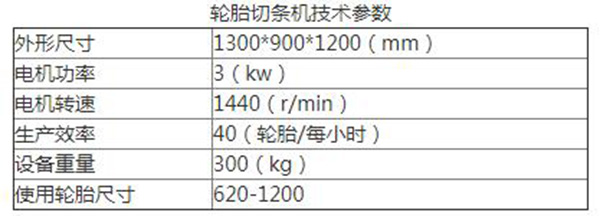 用途:用于將切圈后的廢舊輪胎切割成條狀。